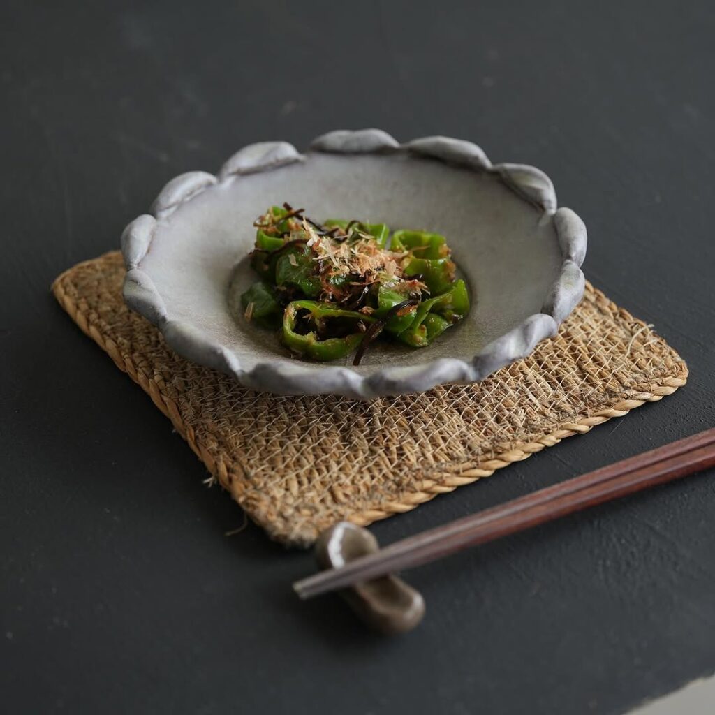 焼きものでは、花のような縁取りづくりのことを呼ぶ輪花。